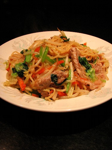お肉と麺と野菜を買って、オイスターソース味の焼きそばにしました。
