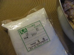浮き粉200、片栗粉6、熱湯300。こねて、丸めて、ちょっと、アッチッチ作業。手のひら真っ赤です。
