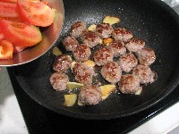肉団子に火が通ったらトマトを入れて、強火に。