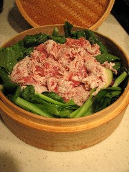 以前、yukarinさんがアップしていらした、モヤシ等の上にしゃぶ肉、