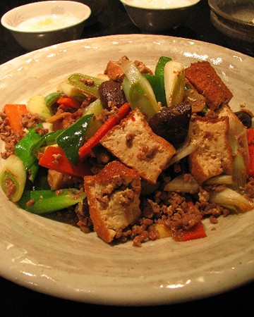 ごま油で炒めて、酒、みりん、醤油、ほんだし。