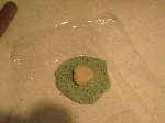 白玉粉、ヨモギ、水を混ぜて練ったら、8等分に丸めます。