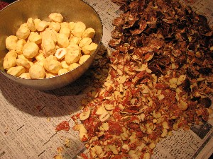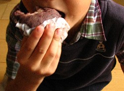 おこわを半分つぶすお手伝いをしてくれたシン。