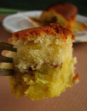 下にスイートポテト、その上にアーモンドケーキの小さなケーキです。