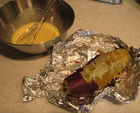 パンを焼くついでに、焼き芋を一緒にオーブンで。