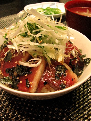 戻り鰹で漬けのどんぶりです。