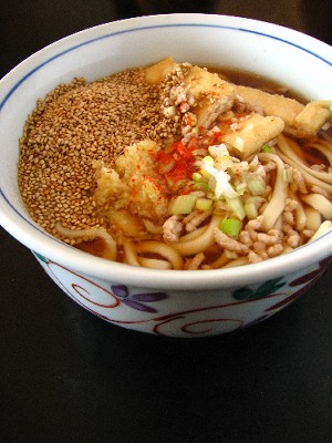 今日は関東風の、いわゆる黒いつゆタイプ。(にんべんつゆのもと)