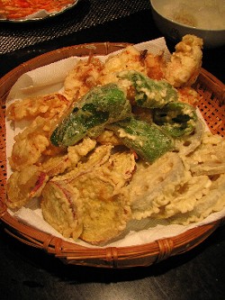 さつまいも、れんこん、にんじんかき揚げ、たまねぎ、ピーマン、