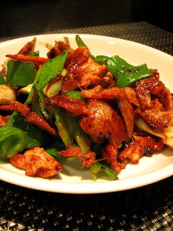 コチュジャン、しょうゆ、砂糖、ごま油、酢、にんにく生姜、胡椒、の下味の、韓国味。ピーマンとねぎと。