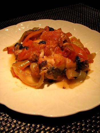 オリーブオイルで両面を焼き、(バジルやセロリの葉っぱなどと一緒)