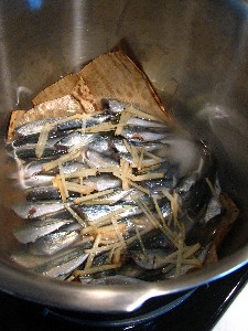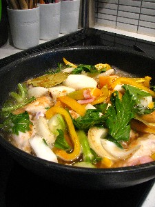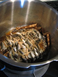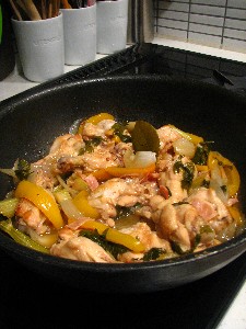 今日はパプリカとセロリをお供に、白ワインビネガーで煮ることにしました。