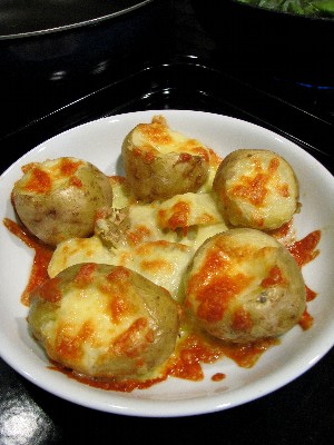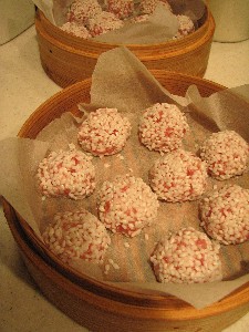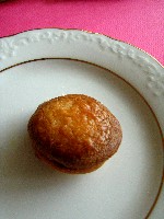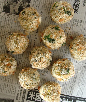 蒸した三浦のカボチャを粗くつぶし、真ん中にはさいころ大のプロセスチーズを詰めて丸めました。