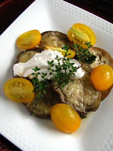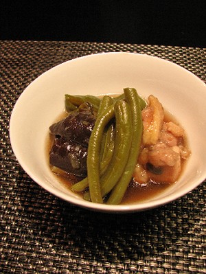 コンソメスープ少々で柔らかく蒸し煮にしたナス。