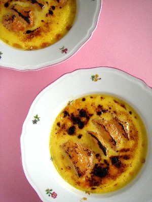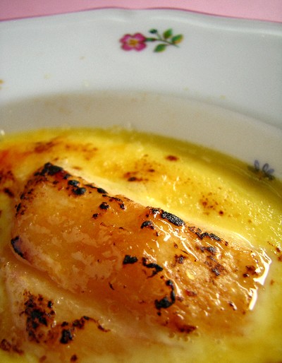 桃に、レモン風味のブリュレクリームをかけて焼きました。(^^)