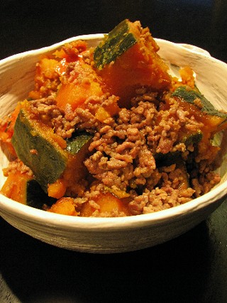 在庫野菜のみじん切りとひき肉を、にんにく生姜で炒め、