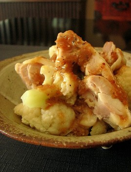 蒸し鶏とカリフラワーの黒酢味噌和え