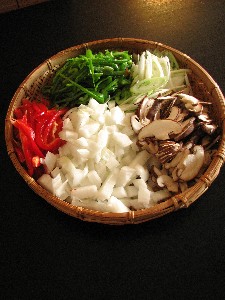 ねぎの青い部分と生姜スライスいっぱい、そしてたっぷりの日本酒で