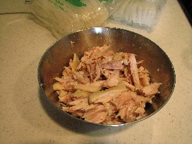 鶏肉、カニカマ、大葉、春雨、サニーレタスで、簡単に。