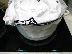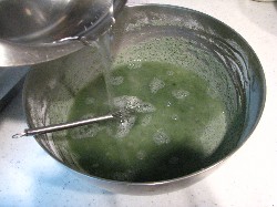 3、 茶漉しなどで一応漉しながら厚底の鍋に移し、中弱火にかけて、