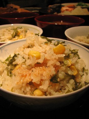 我が家のおなじみ、切り昆布ととうもろこしの炊き込みご飯の今宵でございました。