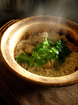 米4カップに酒、醤油、出汁で、薄味の炊き込みご飯の味付けにして水加減をするの。