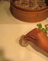ゆでた実をほごしておいて、蒸らしの際に合流させれば、