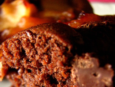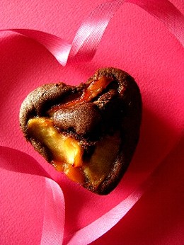 甘酸っぱく煮たりんごとブラックチョコレートの小さなハート型のケーキ。