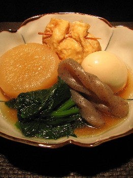 おかずで作ったのはおなじみお宝袋をメインにしたおでん風煮物。