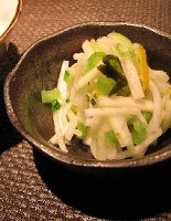 むいた大根の皮と葉っぱを柚子と昆布とお塩で簡単浅漬け。