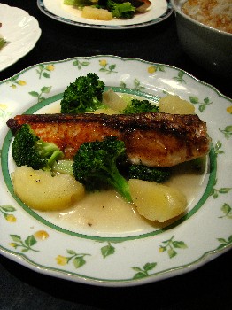 東京では鍋物の具のイメージといった感じの淡白な秋鮭も、