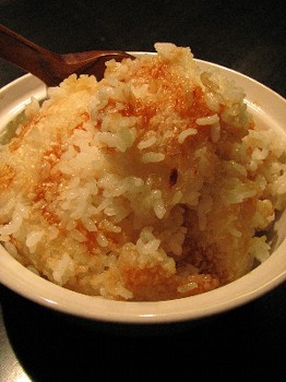 ゆっくり底部分におこげを作り、醤油をチラッと回しかけたのが今夜のご飯。