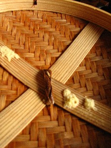 焼成前に、もう一度粉をまぶした棒で、再度ムギュッと。