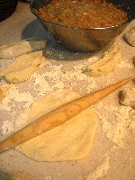 (前日、1次発酵まで済ませておいたパン生地を一部取り分けて