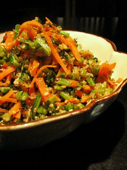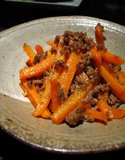 人参、お肉がちょっと入っていてごま油でいためてます。