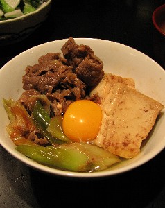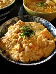 親子丼の味に煮て卵でとじたどんぶりよ。