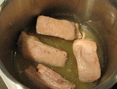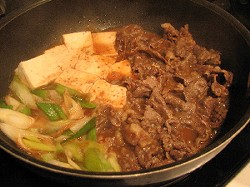 お肉に上記調味料を注いで、クッキングペーパーで軽く覆って、2、3分沸騰。味を見て好みの塩梅だったら、ゆる~~~く、片栗粉でとろみをつけて完成。