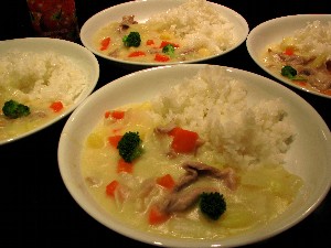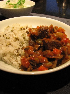 目論見どおり、シチューよ再びの食卓withトマトジュース。