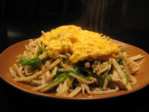あわせておいた酒、砂糖、醤油少々、オイスターソースを回しかけ、