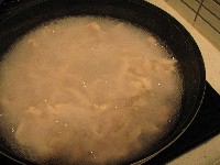 中華鍋にガラスープ半カップと生姜スライスを沸騰させて、