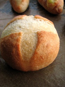 膨らませて振り回してまんべんなく粉をまとわせます。