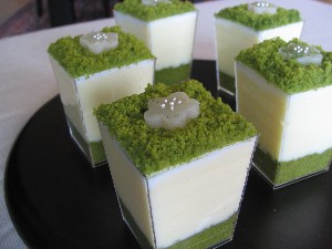 杏仁霜と砂糖、豆乳を合わせて、70度位まで温めたらゼラチンを溶かして冷やします。