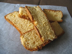 卵の黄身を多めに、そして上白糖で作ったお日様色のしっとり生地。