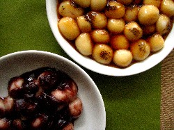ほの甘いもちもちした皮の中にあんがごろごろ!