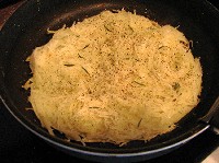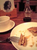 ホットケーキの要領で焼いて、有塩バターとメープルシロップ。