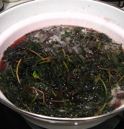 ミキサーにかけて、きれいな桃色。