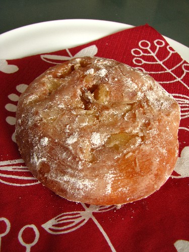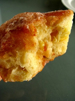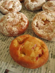 ドイツの謝肉祭の名物ベルリーナー(ラズベリージャム入りドーナツ)の生地を使って作る、りんごの揚げ菓子を作りました。