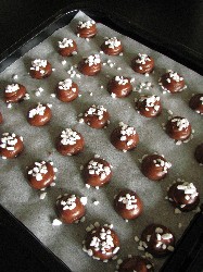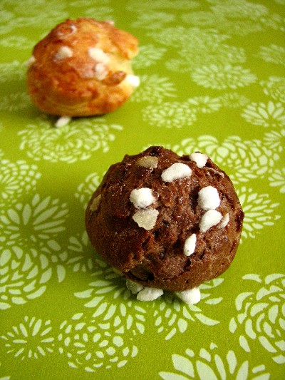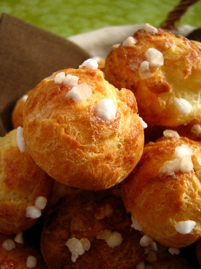 砂糖と水少々で、カラメルを作り、焼きあがったシューに、