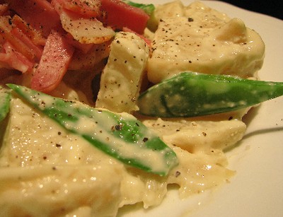 マヨネーズ、にんにく、粉チーズ、黒胡椒、レモン汁、酢、アンチョビペースト、ヨーグルトなどで作ったドレッシングで和えてます。