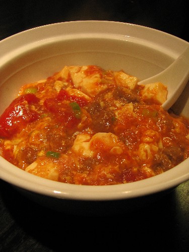3、 おぼろ豆腐をかわいくすくって乗せます。