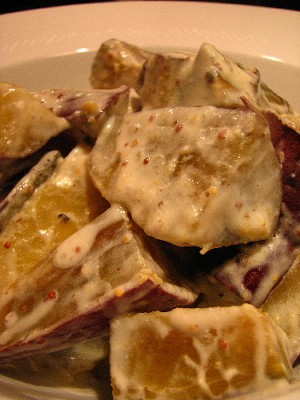 ヨーグルト、粒マスタード、黒胡椒、塩、マヨネーズ、ワインビネガー少々。